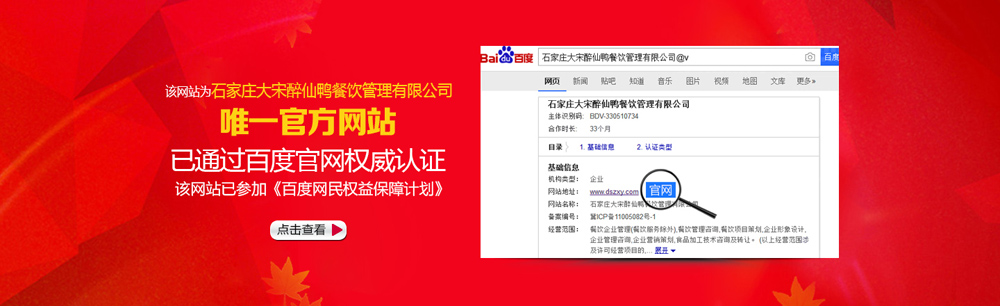 隨著產(chǎn)品的升級(jí),大宋醉仙鴨總部的經(jīng)營(yíng)理念不斷提升,經(jīng)營(yíng)的規(guī)模不斷擴(kuò)大,之后又陸續(xù)開了多家直營(yíng)店。2014年3月,石家莊大宋醉仙鴨餐飲管理有限公司正式成立,之后在國(guó)家商標(biāo)總局申請(qǐng)注冊(cè)“大宋醉仙鴨”商標(biāo)。